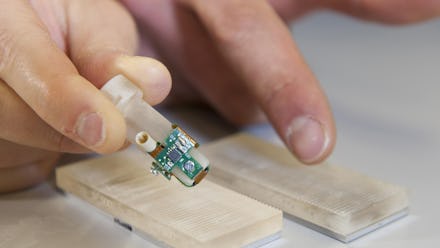 To confirm the sensations were the same, the scientists hooked non-amputees up to the bionic fingertip, connecting it to the median nerve through their skin, then set them up with an EEG cap — a device that collects brain scans. According to the release, the non-amputees were able to distinguish the texture difference 77% of the time, and their brains reacted the same way whether using the bionic tip or their actual finger.