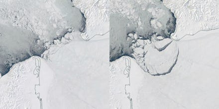 The giant chunk of ice that uncoupled from the greater ice mass was just about the same size as Rhode Island, according to TechInsider. This being the hottest winter in recorded history might have had something to do with it — just a thought. The unprecedented spike worldwide shattered records and certainly raised the heat in both land and ocean temperatures, especially through January and February, as Mic previously reported.