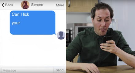 First, a sexual innuendo served as a warmup. Thomas reads examples off his phone: "Do you like Harry Potter?" one message reads, followed by, "If so you should open up your Chamber of Secrets and let my Basilisk Slytherin."