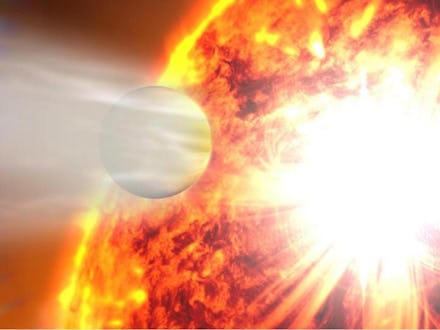 This represents a rare opportunity to study a planet with an orbit that is so different than the ones in our solar system. The planet's farthest point from its star is about 2 1/2 times the distance of Earth from the sun. But its closest approach flings it much closer to its star than Mercury is to the sun.