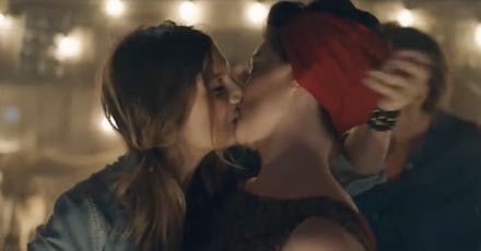 You can watch the entire clip below. The brief shot of the two ladies kissing is at the 0:49 mark. Hide yo' kids, hide yo' wife!