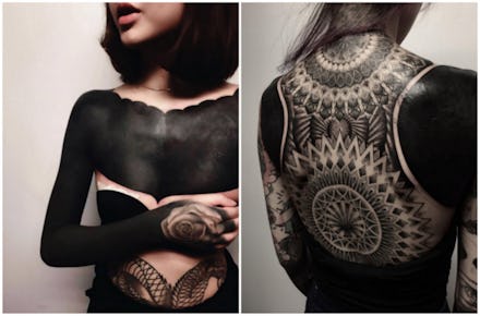 For years, the blackout method (which is basically just filling in your skin completely) has been used in parts of tribal tattoos. But now, covering huge parts of the skin with a thick patch of black ink seems to be on the rise.