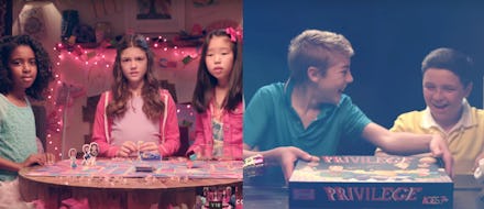 The satirical commercial then advertises a game made for boys called "Privilege." The game box opens, featuring wads of cash and cards that say "opportunity" and lines of cocaine. "I love being white!" one boy exclaims. "And privileged!" nods the other.
