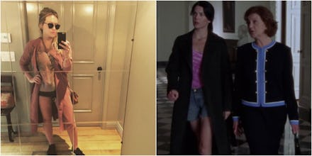 After oversleeping and remembering it was laundry day, Lorelai put on whatever clothing she could find, which happened to be a trench coat, T-shirt, denim shorts and booties — almost the same exact outfit Duff wore and recommended in her Instagram photo.