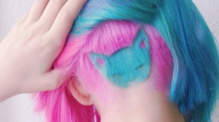 Why just own a cat when you can also wear it in your hair? Instagram user Katichka did just that, by shaving her pet cat's face into the undercut of her cotton candy-colored hair, according to her post.