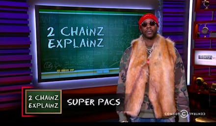 2 Chainz came through on the Nightly Show With Larry Wilmore to drop some knowledge about Super PACs. In his reoccurring "2 Chainz Explainz" segment, the rapper explained that Super PACs have one three goals: "get that money, get that money and get that money."