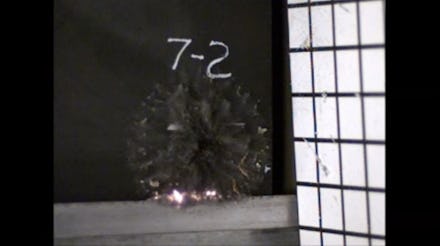 Another one bites the dust: You can watch as a 7.62-by-63-millimeter M2 armor-piercing projectile, fired according to the standard testing procedures established by the National Institute of Justice, is annihilated as the CMFs absorb approximately 60 to 70% of its total kinetic energy, according to ScienceDirect.