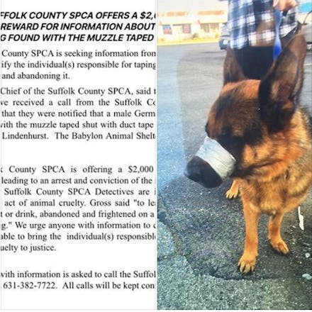 Gross also said that his colleagues believed that the dog had not been alone for long when he was found Saturday on Montauk Highway in Lindenhurst, and called the sight of his taped-shut muzzle "heartbreaking."