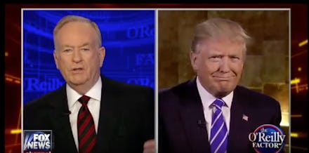 It's rare to sit down for an interview with GOP frontrunner Donald Trump and come away looking worse, but that's exactly what happened to Fox News' Bill O'Reilly on The O'Reilly Factor. Appearing on the conservative pundit's show on Monday, Trump was initially asked a slew of questions that at this point seem familiar — namely, why the media seems to hate him.