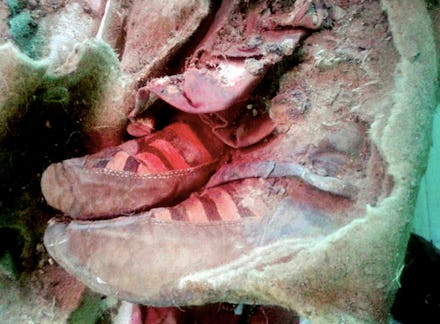 And it's one for the ages: A mummy recently unearthed in Mongolia was apparently buried in boots that look very much like Adidas Superstars. Among the other objects found in its tomb were various vessels, traditional Mongolian clothing, pillows, a saddle, the body of a horse and a sheep's carcass carved into bits — a.k.a. your run-of-the-mill burial rider. The mummy is believed to be the (remarkably well preserved) body of a commoner, most likely a woman.