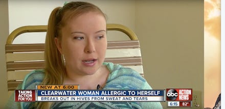 The nightmarish proposition is a grim reality for 28-year-old Florida woman Julie Reid. Reid suffers from a rare skin disorder known as cholinergic urticaria, which causes her body to break into hives in reaction to her sweat and tears, local ABC7 reported.