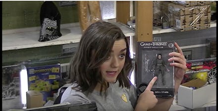 While most pranks involving celebrities require the person to remain inconspicuous, it's pretty hard when you're a star on Game of Thrones, and you're in, of all places, a hobby shop. Teaming up with Nylon — the magazine she graced the cover of for its May issue — Maisie Williams tried to prank unsuspecting fans as unassuming store clerk "Lorraine" giving out free Game of Thrones swag. Most people were convinced from the onset that she was, in fact, Arya Stark.