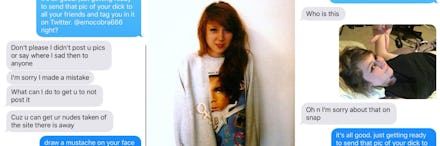 Now imagine that a creepy stranger named "Geoffrey" comes across them on the internet and sends them to you via Snapchat. You feel violated and disgusted by this sex crime, but then! Geoffrey sends you pics of his own lil' ding-dong, creating the perfect opportunity to exact revenge. Do you do it?
