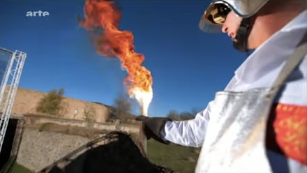 It was built by the National Scientific Research Center in 1969 to study "heat transfer fluid systems, energy converters and the behavior of materials at high temperatures," according to Amusing Planet. And what better way to test the behavior of materials at high temperatures than to set them ablaze?