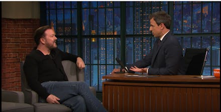 Last night, comedian Ricky Gervais appeared on Late Night With Seth Meyers to talk with the host about his love-hate relationship with the circus that is the Donald Trump campaign.