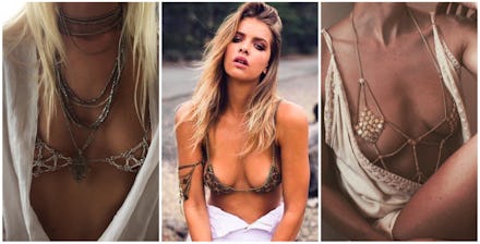 For women like Kim Kardashian West, gaffer tape will do. For women like Kendall Jenner, bralettes are the only way to go. And now, for the most daring among us, wearing chains that construct the very basic silhouette of a bra, with metal appliqués sometimes covering the nipples, is completely OK.
