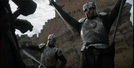Inside is where Lyanna Stark, Ned's sister, is being kept (after either being kidnapped by or having run away with Prince Rhaegar). When Ned Stark and his company arrive to retrieve Lyanna, a brutal battle ensues between the fighters gathered, as hinted in the preview with a young Ned and Ser Arthur Dayne (of note: the dialogue between the two is transferred word-for-word from the books).