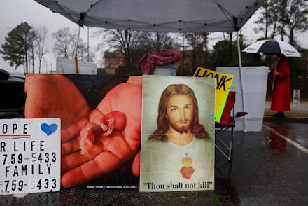 Although lawmakers considered grandfathering in the Huntsville clinic to prevent it from closing, a move to do so failed in committee, according to the Associated Press. So, basically, because anti-choice protesters are wont to picket abortion clinics, displaying massive images of aborted fetuses and calling women murderers, abortion providers (not to mention the patients they serve) will likely be penalized.