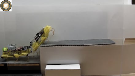 Thanks to a "tethered magnetic connector," the dynamic duo can help pull each other up the step, according to the study. This allows them to climb a taller step than they could have if they tried alone.