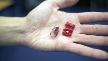 Here's how it works: The origami robot, made of dried pig intestine, is folded into an ice capsule that travels down the esophagus and into the stomach. The researchers created a synthetic stomach using a pig stomach, silicone rubber, and water and lemon juice to simulate the stomach acid, according to MIT News.