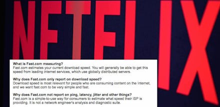 Now Netflix is getting a little more scientific. Netflix launched a site late Wednesday night called Fast.com, where — in one click — anyone browsing the internet can see how fast their internet speed is. The site checks to see how fast an internet connection can download information from Netflix's servers.