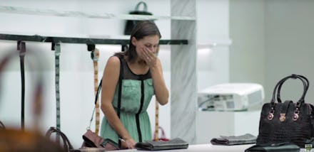 In the clip, unsuspecting shoppers at a Bangkok shopping mall enter PETA's faux pop-up shop, the Leather Work, to browse the fancy leather goods. Only, the interior of the products isn't high-end silk lining — it's animal carnage.