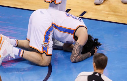 When you take a knee to the junk, like Oklahoma City Thunder center Steven Adams did during last night's NBA playoffs game, the pain doesn't live in the testicles. It ascends, climbing up the nerves into the stomach, where it grows into a bellyache, momentarily incapacitating you.