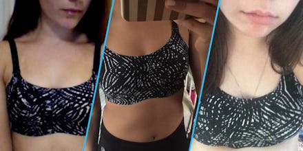 "I really wanted to love this sports bra, but my overall experience is a resounding shrug... The second day I wore it, I started to notice that the fabric is kind of tight and restrictive in an uncomfortable way and kind of squished my boobs into a point.