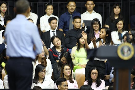 Obama was in Vietnam to tout his administration's end to a decades-long arms embargo against the country. He used the town hall to promote his message that the Vietnamese government should encourage free speech among its citizens.