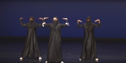 A prior version of this story's headline referred to the clothing the dancers wear as a hijab. In the video featured, WMDP is wearing niqabs.