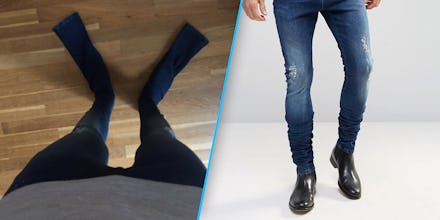 While some might assume this is simply a factory mistake, ASOS explained in an email the pants are the brand's menswear Super Skinny Longline Stacker jeans and are supposed to be this length.