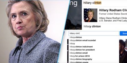 There's a viral video going around that claims Google is artificially hiding search terms that would make Hillary Clinton look bad — like "Hillary Clinton crimes."