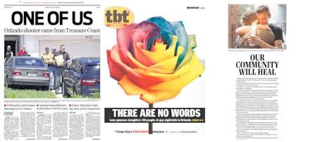 The Tampa Bay Times featured a rainbow rose with the headline, "there are no words."