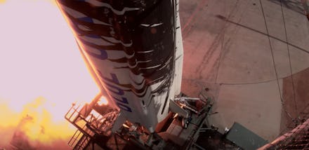 The capsule then jettisoned and drifted back down to Earth suspended under parachutes, while the rocket flew back for a picture-perfect landing: