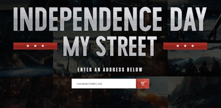 IndependenceDayMyStreet.com is powered by Google Maps, providing a street view of any address put into the website after it's been essentially demolished by aliens. The realistic portrayals of suburban streets, city blocks and historic landmarks paint an eerie picture of what's possible if life on other planets are truly intelligent enough to take over Earth.
