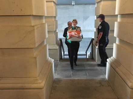 The protesting Democrats also received a glut of pizza deliveries. Nelba Marquez-Greene, whose 6-year-old daughter was shot and killed in the massacre at Sandy Hook Elementary School three years ago sent pizzas with a note that said, "LOVE WINS!!!," noted the Hartford Courant. An annonymous citizen in California also paid $344 dollars to have nearly a dozen Domino's pizzas delivered to the politicians (by one very jazzed woman), the Huffington Post reported.