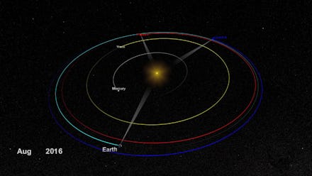 You can see their positions illustrated in the graphic below. The spacecraft are labeled in blue and red:
