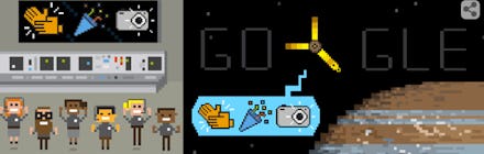 Juno, NASA's space probe that launched nearly five years — and 540 million miles — ago, has finally reached the enormous gas planet that is Jupiter. Google celebrated the NASA spacecraft's successful (and tricky) attempt to enter Jupiter's orbit with an adorable 8-bit Google Doodle on its homepage Tuesday morning.