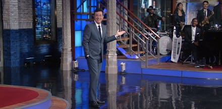 Colbert spends six and a half very enthusiastic minutes going into the details of the romantic comedy-esque meet-cute. The whole thing is enough to make even the Scrooge-iest curmudgeon be like, "OMG. Aww. He loves his wife so much. This is an adorable story. Love is special and we should cherish it!"
