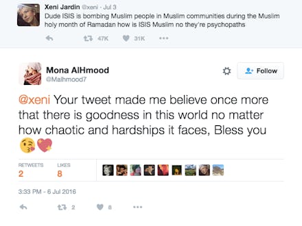 Muslims have been sending loving and kind messages to tech journalist Xeni Jardin for tweeting a simple point: The Islamic State group, also known as ISIS, isn't representative of Islam and Muslims.