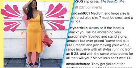 In response, yet again, ASOS issued a statement in the post's comment section, revealing that it's still grappling with a fan base that's split: "It's a really interesting debate — we label petite, curvy, tall and maternity on our site to help people find the best fit for them.