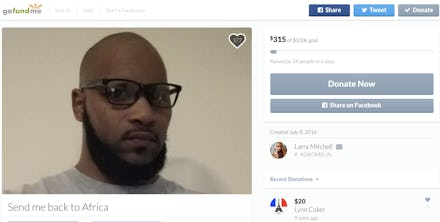 Mitchell created a GoFundMe page on Friday for people to donate funds to send him "back to Africa." "If you want me to go back to Africa, I will gladly go," Mitchell wrote on the page. "You can help make your dream and mine come true."