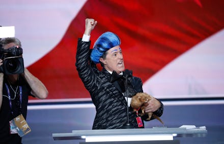 The Late Show host took over the Cleveland RNC stage to bring full circle a bit he's performed on his show since the beginning of the election cycle. And while Colbert's coverage of the convention was pre-planned, his full Flickerman regalia — complete with live ferret — probably wasn't part of that. Maybe it was the element of surprise that allowed Colbert to get in a few jabs before security came to corral him.