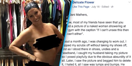 As she continued to unpack how this exploited woman must feel now, she remembered a similar picture her husband had taken of her just a month earlier. Before a workout, Blackmon was standing in her closet, with just her sneakers, underwear and headband on, and her husband snapped a pic.