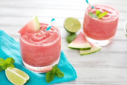 Sometimes you just need a boozy slushy. But instead of grabbing a Slurpee from your nearest 7-Eleven and spiking it with whatever's in your flask, consider upgrading to this drink. Blogger Kristen of Bourbon and Honey recommends freezing watermelon chunks and then whizzing them n a blender with tequila, lime juice and agave syrup for a refreshing cocktail. This could maybe count as a serving of fruit if you sip hard enough. Get the recipe here.