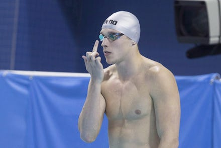 Canadian swimmer Santo Condorelli gives his father the middle finger.