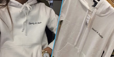 As seen in the above image, Oberg's version, which is no longer available, was a white hoodie with the words Sporty & Rich. Forever 21's sweatshirt, which is currently being sold on its website and in stores, says Smart & Pretty.