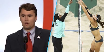 When a photo showing a women's beach volleyball match at the 2016 Rio Olympics went viral this week, Kirk used the opportunity to make sexist and Islamophobic comments about the hijab — and got his facts pretty much all wrong.