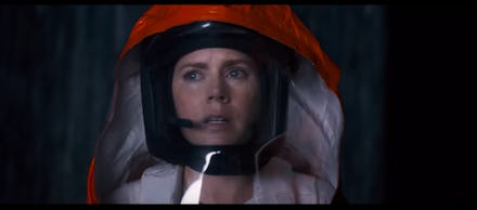 The film stars Amy Adams as expert linguist Dr. Louise Banks, who is given the task of trying to make proper contact with a mysterious alien species that has come to Earth in oblong spaceships. These mysterious ships — or "shells," as they're referred to by other characters in the trailer — have landed across the globe, opening up every 18 hours. That's when Banks approaches and makes her first physical contact with the species upon removing her hazmat suit.