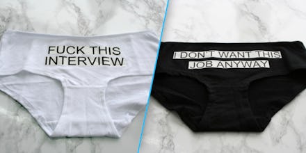 Other options include undies with "I would tear people a new asshole as much as the next person" and "Fuck this interview."